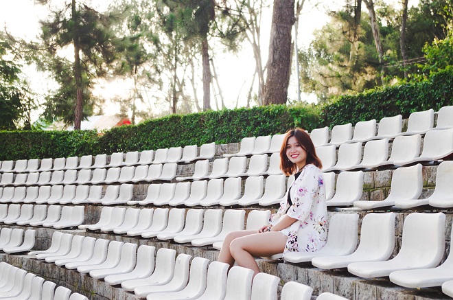 Ngoài ra, khu khán đài của sân khấu với những hàng ghế trắng xếp san sát nhau tạo nên một khung cảnh rất lạ, mang lại cho bạn cảm giác nơi đây là một đấu trường cổ kính, bụi bặm và chẳng “đụng hàng” với nơi nào hết. Khu này cực thích hợp cho những ai không chỉ muốn có hình đẹp, mà bối cảnh nhất định phải lạ.