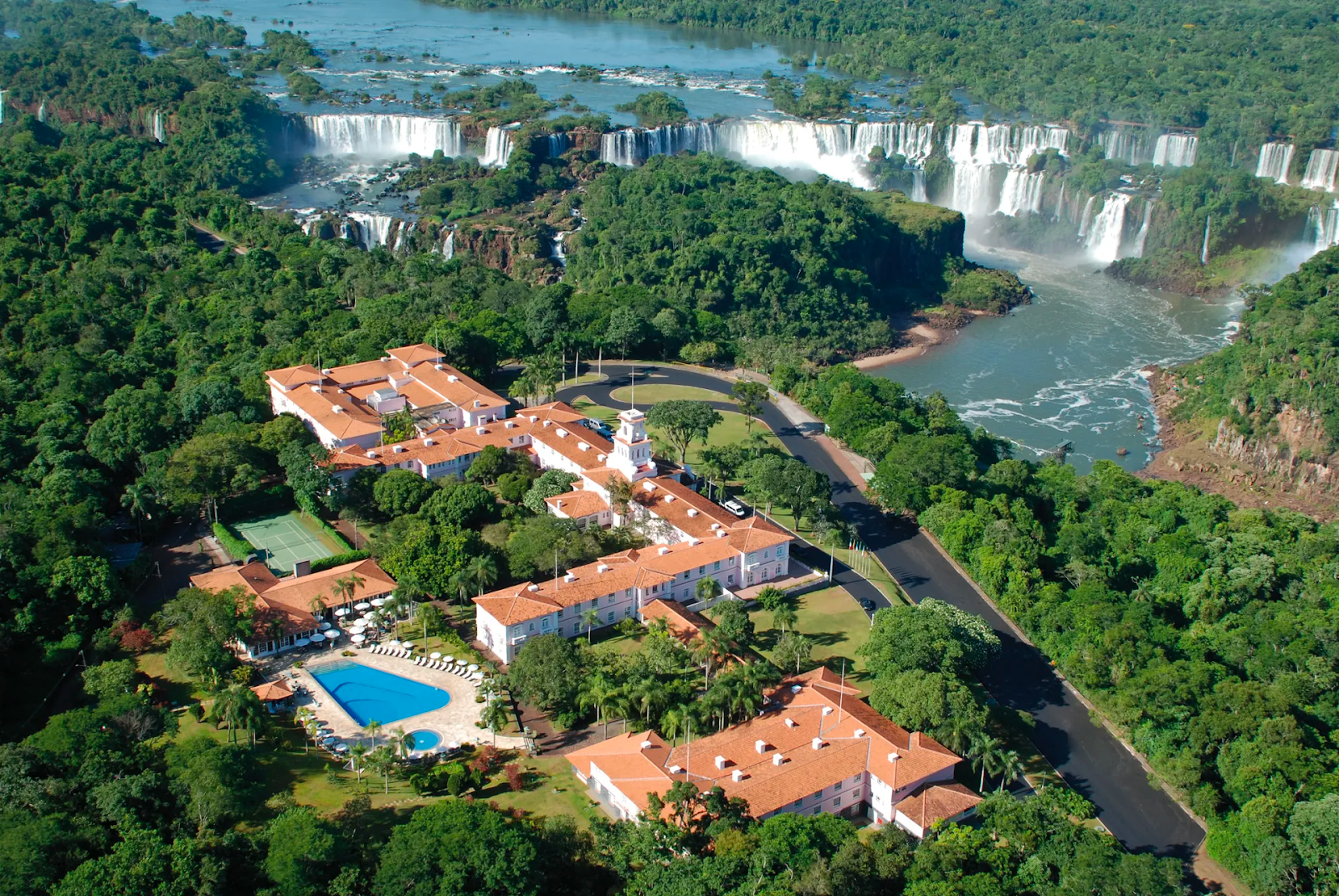 Với những viên gạch lát đất nung azulejo sang trọng, các bức tranh thủy mặc họa tiết hoa và động vật, cùng những tấm gỗ đen bóng, khách sạn Hotel das Cataratas, A Belmond Hotel được thiết kế theo phong cách hacienda với không khí sang trọng của thế giới cổ điển. Tuy nhiên, dù thiết kế tinh tế đến đâu thì vị trí tuyệt vời mà khách sạn này nằm trên mới là điểm nổi bật. Là khách sạn duy nhất tại phía Brazil của Vườn quốc gia Iguaçu nhiệt đới, khách sạn cách thác nước Iguassu có những chiếc cầu vồng tuyệt đẹp chỉ một vài bước chân. Ngoài ra, du khách còn có thể tham quan độc quyền vào một khu bảo tồn chim rộng gần 5ha, là nơi trú ngụ của hơn 160 loài chim bao gồm cả các loài vẹt và chim tucan quý hiếm, có thể quan sát bằng kính hiển vi Leica hiện đại được cung cấp miễn phí bởi khách sạn.