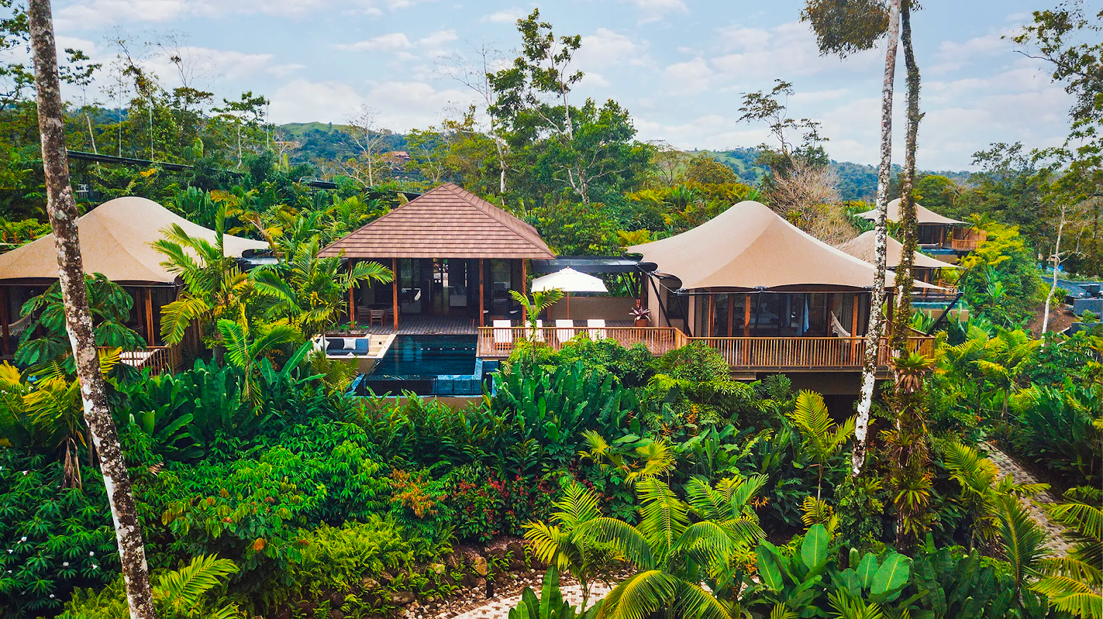 Ở Nayara Tented Camp, chịu ảnh hưởng bởi các khu cắm trại và khu nghỉ dưỡng sa mạc cao cấp ở châu Phi, bạn sẽ không cảm thấy rõ ràng giữa không gian trong nhà và ngoài trời. Đây là khu nghỉ dưỡng rừng nhiệt đới đầu tiên tại Trung Mỹ, nằm trong Khu bảo tồn núi lửa Arenal ở Costa Rica và gồm 39 lều trên sợi dây xích, nằm dưới ánh nhìn của một ngọn núi lửa đang hoạt động. Bên trong lều được thiết kế theo phong cách Pura Vida sang trọng, với giường được trang trí bằng mành, nội thất bằng da và bồn tắm sâu, trong khi bên ngoài có những chiếc võng êm ái, hồ bơi vòm nước nguồn từ suối và rừng cây Cecropia