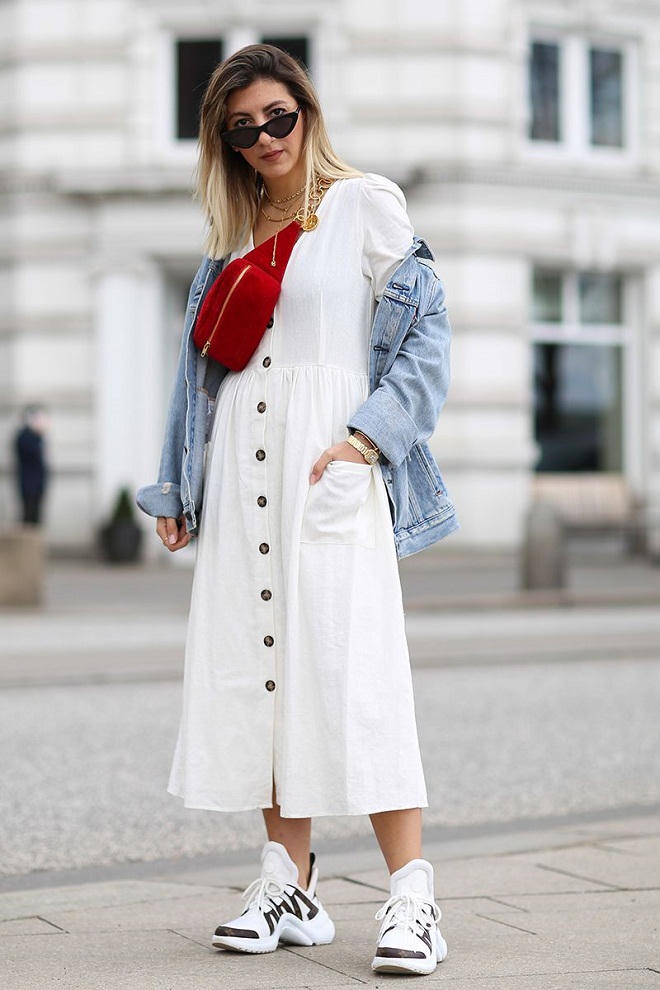 Mẫu giày có thể kết hợp nhiều dạng trang phục khác nhau. Trang phục nữ tính kết hợp cùng giày thể thao hầm hố là lựa chọn thú vị cho mùa hè năm nay.