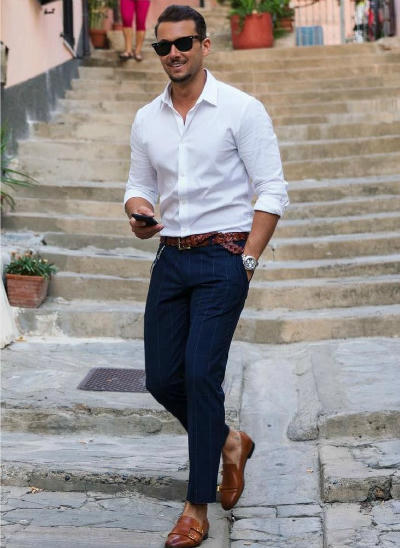Chiếc sơ mi trắng đơn giản, lịch sự cần thiết cho mọi quý ông. Ảnh minh họa:Pinterest. |