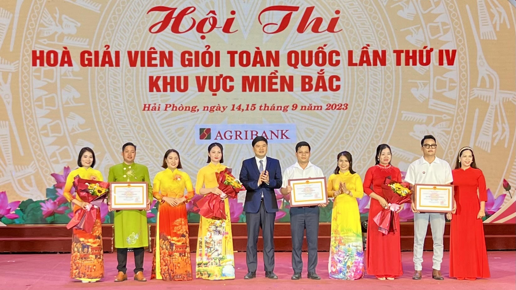 (PLVN) - Qua 02 ngày thi sôi nổi, ngày 15/9, vòng thi khu vực miền Bắc - Hội thi Hòa giải viên giỏi toàn quốc lần thứ IV năm 2023 do Hội đồng phối hợp PBGDPL Trung ương tổ chức tại Hải Phòng đã thành công tốt đẹp. 6 đội thi đến từ các địa phương Hà Tĩnh, Vĩnh Phúc, Hà Nội, Thái Nguyên, Ninh Bình, Hải Phòng đã được lựa chọn để bước vào vòng chung kết toàn quốc.