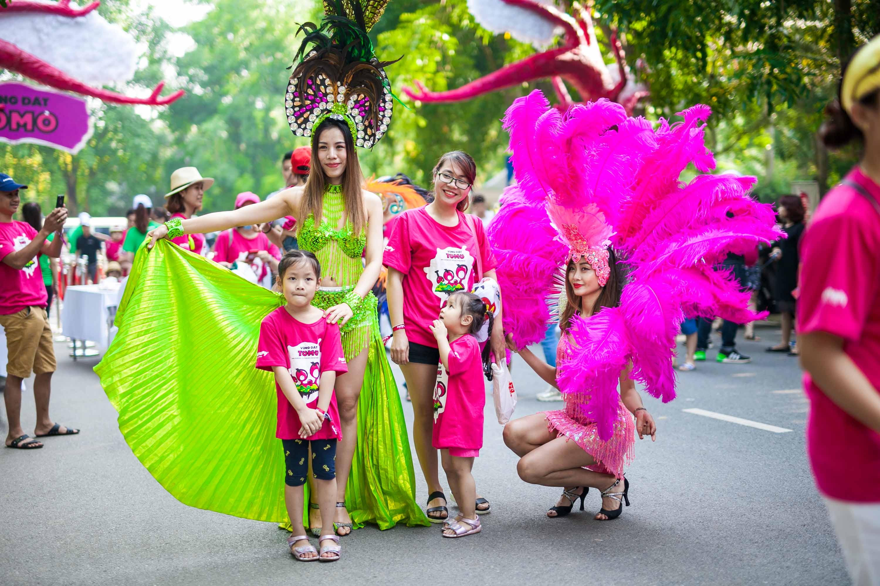 Hàng ngàn em nhỏ còn được thưởng thức màn trình diễn Carnaval sôi động, màu sắc với hàng trăm nghệ sĩ trong trang phục mascott, đi cà kheo, trình diễn bong bóng nghệ thuật; được vẽ mặt nghệ thuật; nghỉ ngơi tại khu đệm hơi Lamzac.
