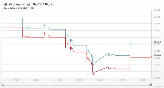 Như vậy, tính từ đầu tuần đến nay, giá vàng SJC đã giảm tổng cộng 320.000 đồng/lượng ở cả chiều mua vào và bán ra, đánh dấu tuần thứ ba giảm giá liên tiếp của kim loại quý.
