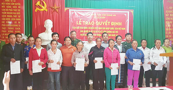 65 người Lào di cư tự do và kết hôn không giá thú trên địa bàn Nghệ An được nhận Quốc tịch Việt Nam