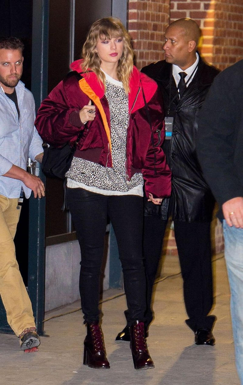 Cũng có những lúc Taylor khoác lên vẻ ngoài có phần gai góc hơn, tuy nhiên vẫn ở mức vừa phải chứ không nhằm “lấy thịt đè người”. Diện nguyên cây đen theo phong cách rock chic này là một ví dụ. Crop top và áo khoác mỏng dáng dài vô cùng ăn ý với chân váy da cách điệu bất đối xứng, đi cùng sandals đen và clutch hộp kim loại tông vàng làm điểm nhấn. Xem ra đã đến lúc bạn nên học tập cô nàng tinh tế này và làm mới diện mạo của mình rồi đấy!