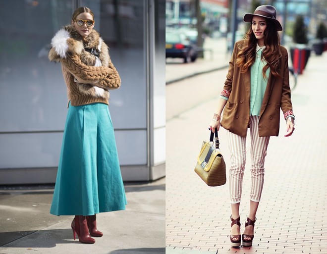 Xanh sáng và nâu đậm: Cặp đôi gợi phong cách country-chic đậm chất đồng quê với vẻ đẹp tinh khiết, giản dị. Đây là một gợi ý kết hợp tuyệt vời cho những nàng yêu vẻ đẹp lãng mạn bay bổng.