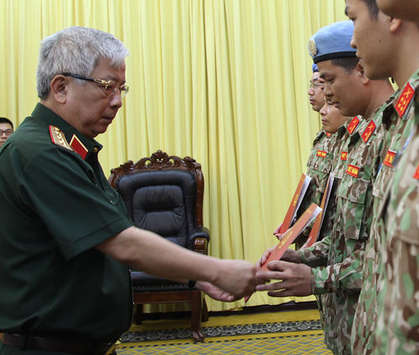 Thông tin từ Cổng Thông tin điện tử Bộ Quốc phòng, thay mặt lãnh đạo Bộ Quốc phòng, Thượng tướng Nguyễn Chí Vịnh, Ủy viên Trung ương Đảng, Ủy viên Thường vụ Quân ủy Trung ương, Thứ trưởng Bộ Quốc phòng, Trưởng Ban Chỉ đạo Bộ Quốc phòng về việc Quân đội tham gia hoạt động GGHB LHQ trao quyết định của Chủ tịch nước cho 7 sĩ quan.