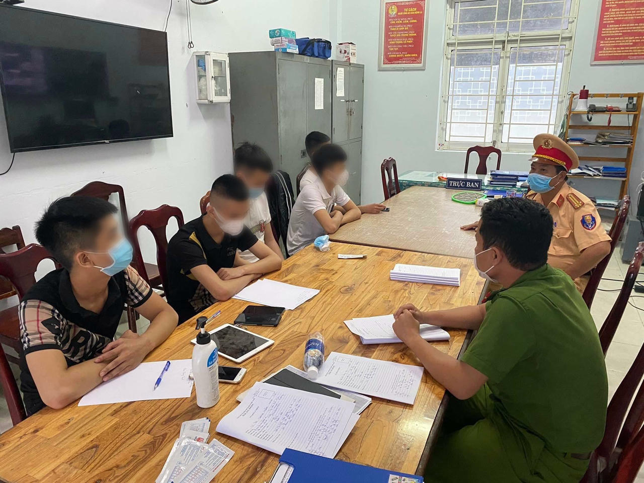 Các đối tượng khai nhận vụ việc tại cơ quan công an. |