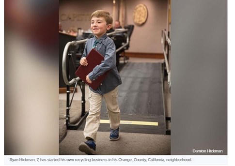 - Tuy mới 7 tuổi nhưng cậu bé Ryan Hickman ở bang California (Mỹ) đã trở thành ông chủ của một công ty thu gom ve chai bởi đam mê muốn làm sạch môi trường đã trỗi lên trong cậu khi mới 3 tuổi.