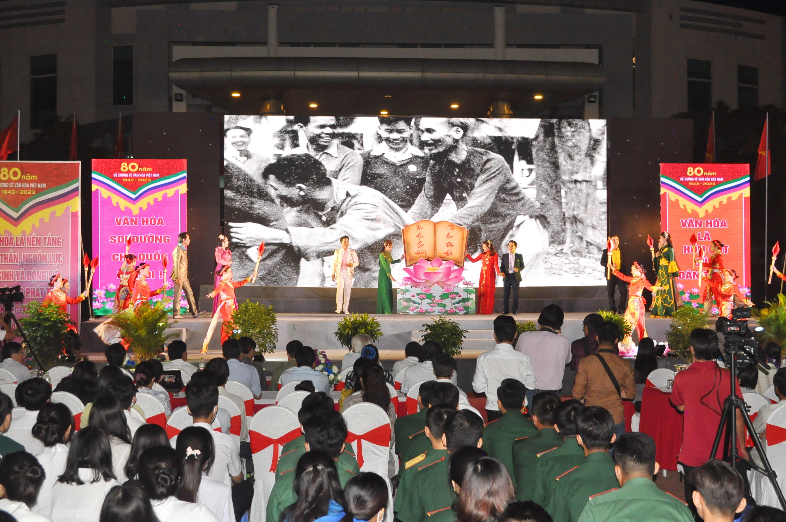 Chương trình nghệ thuật chào mừng kỷ niệm 80 năm ra đời “Đề cương về Văn hóa Việt Nam” (1943 – 2023) tập hợp các loại hình nghệ thuật như: ca, múa nhạc (múa minh họa, chất liệu dân gian đương đại), nghệ thuật truyền thống (nghệ thuật cải lương, nghệ thuật đờn ca tài tử, nghệ thuật Khmer Nam bộ); âm nhạc sân khấu đương đại, nhảy hiện đại, hiệu ứng màn hình Led; nghệ thuật tạo hình, sắp đặt.