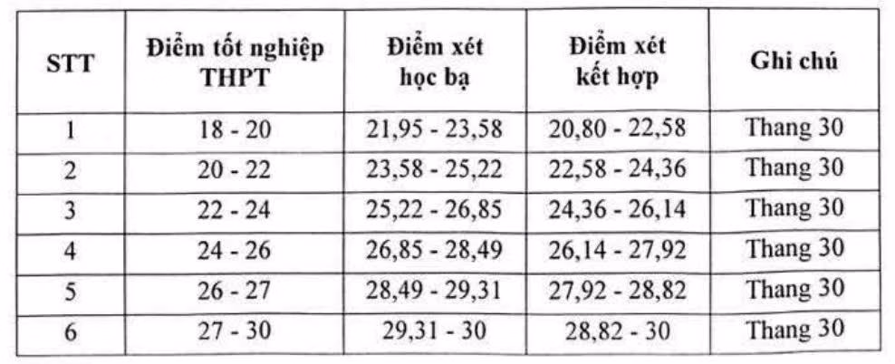 Ngoài ra, Học viện Báo chí và Tuyên truyền công bố bảng quy đổi điểm chuẩn giữa các phương thức.