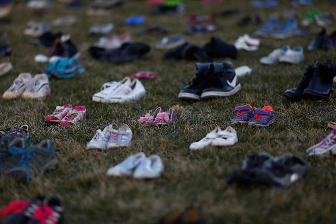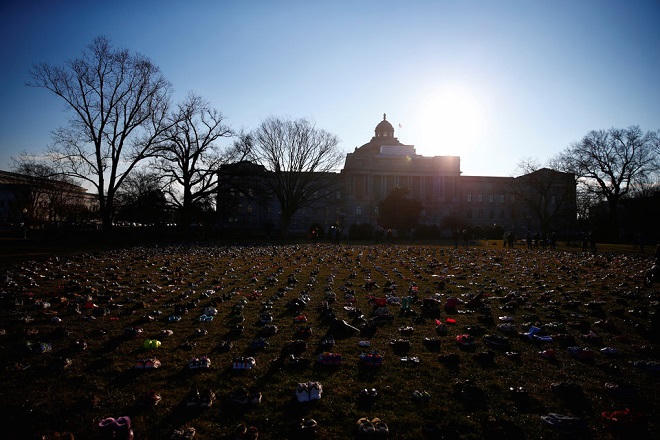 Trước đó ngày 13/3, các nhà hoạt động xã hội đã đặt 7000 đôi giày trên bãi cỏ ở phía trước của Tòa nhà Quốc hội Hoa Kỳ trên đồi Capitol ở Washington.