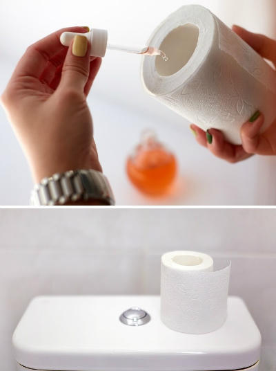 2. Để toilet có mùi dễ chịu, thêm vài giọt tinh dầu yêu thích vào phía trong lõi giấy vệ sinh: