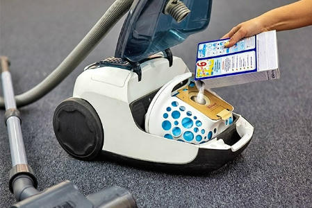 3. Để loại hết các mùi khó chịu trong lúc hút bụi, đổ một chút bột giặt vào phần túi chứa bụi.