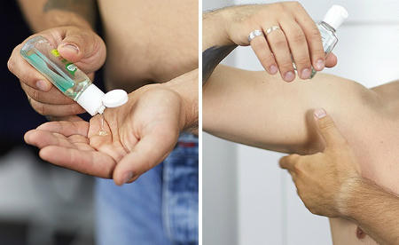 7. Nếu vì lý do nào đó không thể tắm, có thể làm sạch da bằng gel diệt khuẩn, sau đó dùng thêm lăn hay xịt khử mùi.