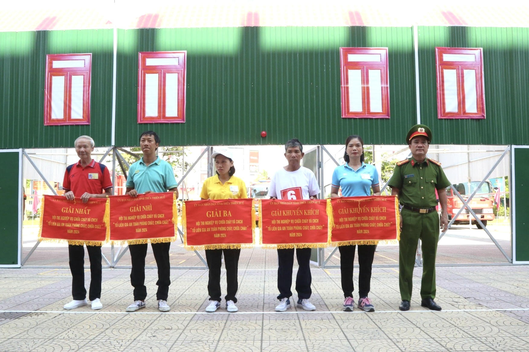 Đại tá Hồ Xuân Phương - Phó Giám đốc Công an tỉnh Thừa Thiên Huế trao giải cho các tổ liên gia. |