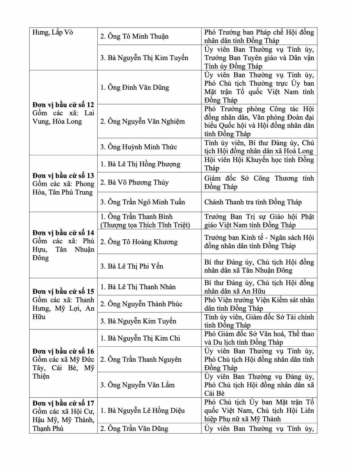 Trong danh sách trúng cử có nhiều cán bộ lãnh đạo chủ chốt của Tỉnh ủy, HĐND, UBND tỉnh cùng lãnh đạo các sở, ngành và địa phương. Nhiều ứng cử viên nhận được tỷ lệ tín nhiệm cao, cho thấy sự tin tưởng của cử tri đối với năng lực, uy tín và tinh thần trách nhiệm của đội ngũ cán bộ.