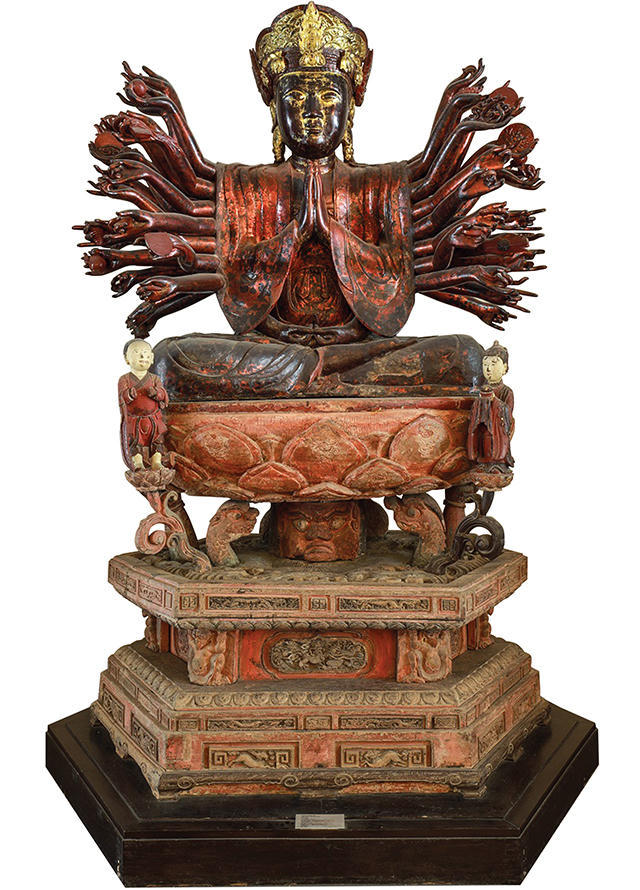 Tượng Quan Âm Diệu Thiện với 42 thủ nhãn ấn pháp thể hiện diệu dụng của chú Đại Bi, đúng với tinh thần “Giác tha” của nhà Phật. Quan Âm Bồ Tát có hạnh nguyện sinh ngàn tay, ngàn mắt, có thể làm lợi ích an vui cho tất cả chúng sinh với thần chú đại bi.