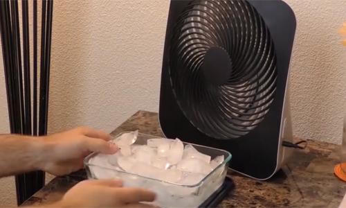 Bạn không cần phải bật máy điều hòa để có hơi lạnh tỏa ra trong căn phòng, mà có thể sử dụng một mẹo nhỏ đơn giản với nước đá và một chiếc quạt. Để đá lạnh vào trong một chiếc bát và đặt phía trước chiếc quạt. Hơi lạnh bốc lên sau đó sẽ được quạt thổi khắp phòng giúp giảm nhiệt rất tốt. Nếu chịu khó mày mò, bạn còn có thể tự chế một chiếc quạt thổi đá cho riêng mình.