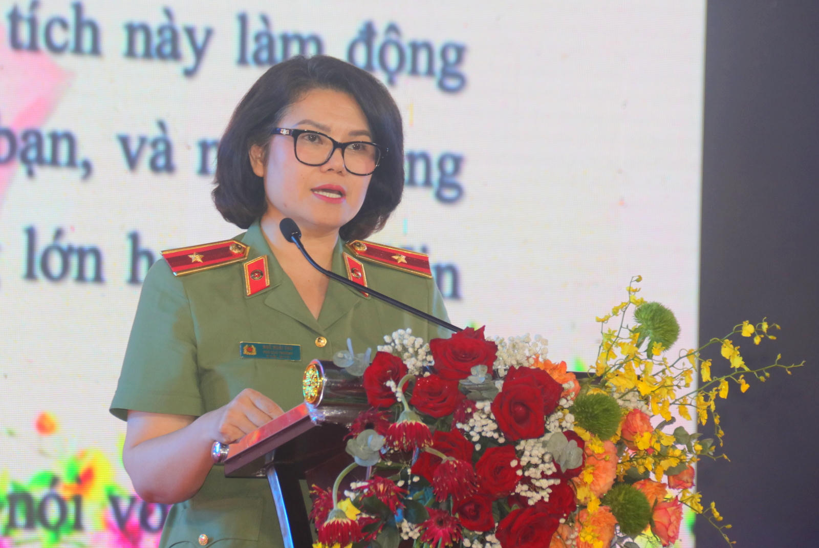 Thiếu tướng Ngô Hoài Thu – Phó Cục trưởng Cục X03 (Bộ Công an), Trưởng Ban Tổ chức Hội thi đánh giá cao phần thể hiện của các thí sinh |