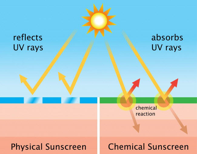 Có hai loại chống nắng là vật lý (kẽm và TiO₂) và hóa chất. Loại đầu tiên có tác dụng ngăn chặn ánh nắng mặt trời, trong khi loại thứ hai có thể gây các phản ứng hóa học và gây hại cho sức khỏe, như phá hủy tế bào và dẫn tới ung thư da.