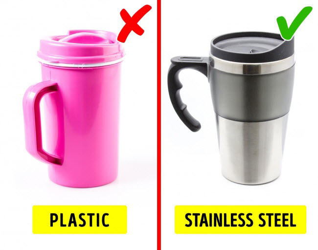 Lời khuyên: Sử dụng bình nước bằng thủy tinh hay sứ và gốm. Bạn cũng có thể sử dụng bình đựng nước bằng thép không gỉ hay nhựa nguyên sinh (PP).