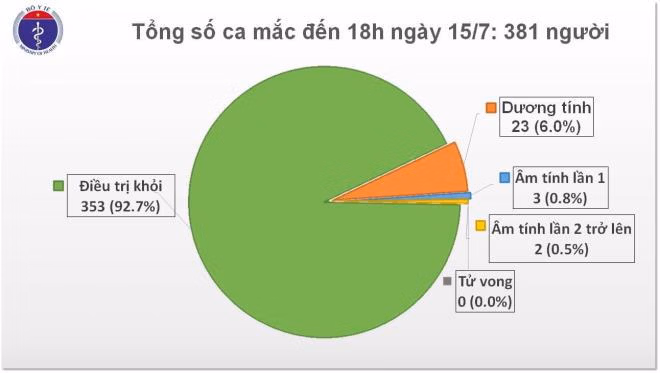 Tiểu ban Điều trị - Ban Chỉ đạo quốc gia phòng, chống dịch COVID-19 cho biết, đến thời điểm này có 353/381 bệnh nhân COVID-19 được công bố khỏi bệnh, chiếm 92,7%.