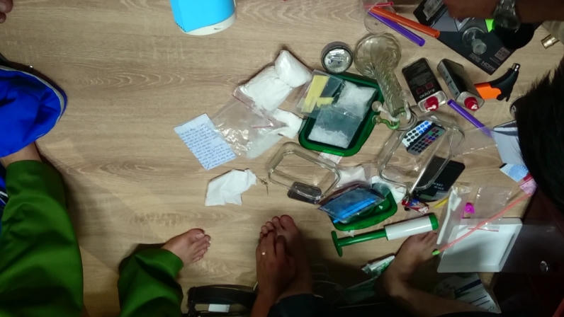 Ngôi nhà của hắn xập xệ nhưng căn phòng ngủ thì thật sang trọng, đầy đủ tiện nghi, điều hòa loại tốt. Tiến hành khám xét khẩn “dinh thự” của ông “trùm”, lực lượng trinh sát phát hiện và hu giữ hơn 300g ma túy tổng hợp dạng đá, 1 xe máy, 4 ĐTDĐ, 14,5 triệu đồng cùng một số tang vật khác có liên quan. Số ma túy này, hắn giấu trong một chiếc hộp rất dày và nặng, đã được đã hút chân không. Muốn lấy ma túy ra khỏi chiếc hộp này thì phải bơm không khí vào hoặc đập vỡ chiếc hộp. Theo hắn, giấu ma túy như thế người khác sẽ khó tìm ra mà lại bảo quản ma túy tốt. Trong người hắn luôn có dụng cụ để mở hộp và lấy ma túy ra. Cho đến khi cơ quan công an khám xét, thu giữ được số ma túy trên tại phòng ngủ của mình thì Tân mới bắt đầu khai nhận.