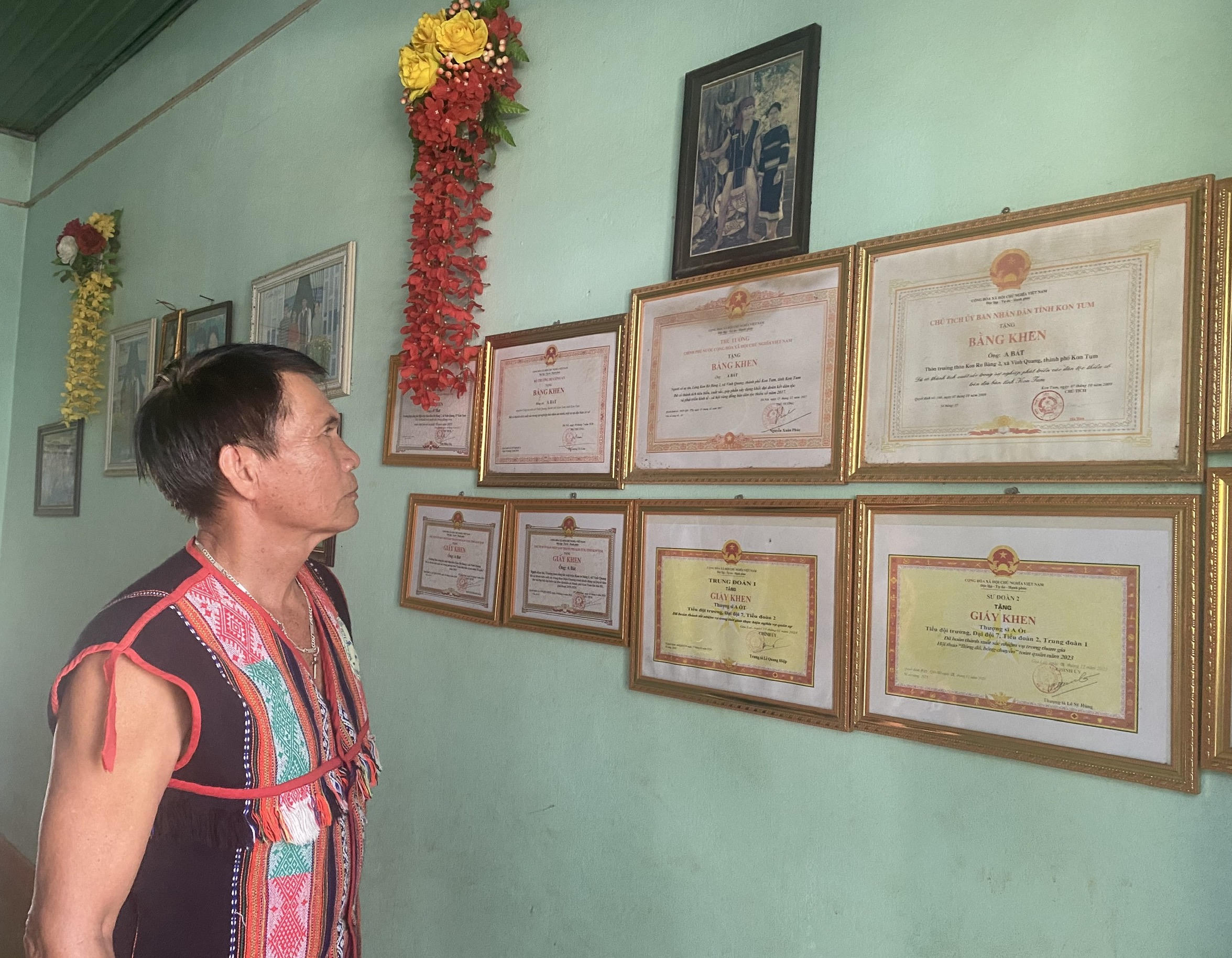 Nhờ những đóng góp của mình, ông A Bát đã được tặng thưởng nhiều bằng khen |