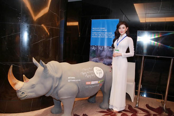 (PLO) -Tại buổi đón tiếp Hoàng tử Anh William tới Việt Nam tham dự Hội nghị chống buôn bán trái phép động vật hoang dã ngày (17/11), Á hậu Huyền My nền nã trong bộ áo dài truyền thống trắng tinh khôi.