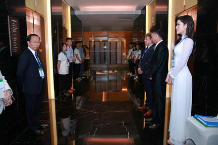 Á hậu Huyền My là một trong những vị khách mời may mắn được mời tham gia giao lưu và trò chuyện cùng hoàng tử Anh. Cô chọn tà áo dài truyền thống màu trắng tinh khôi khi cùng các đại biểu đón tiếp hoàng tử WIlliam.