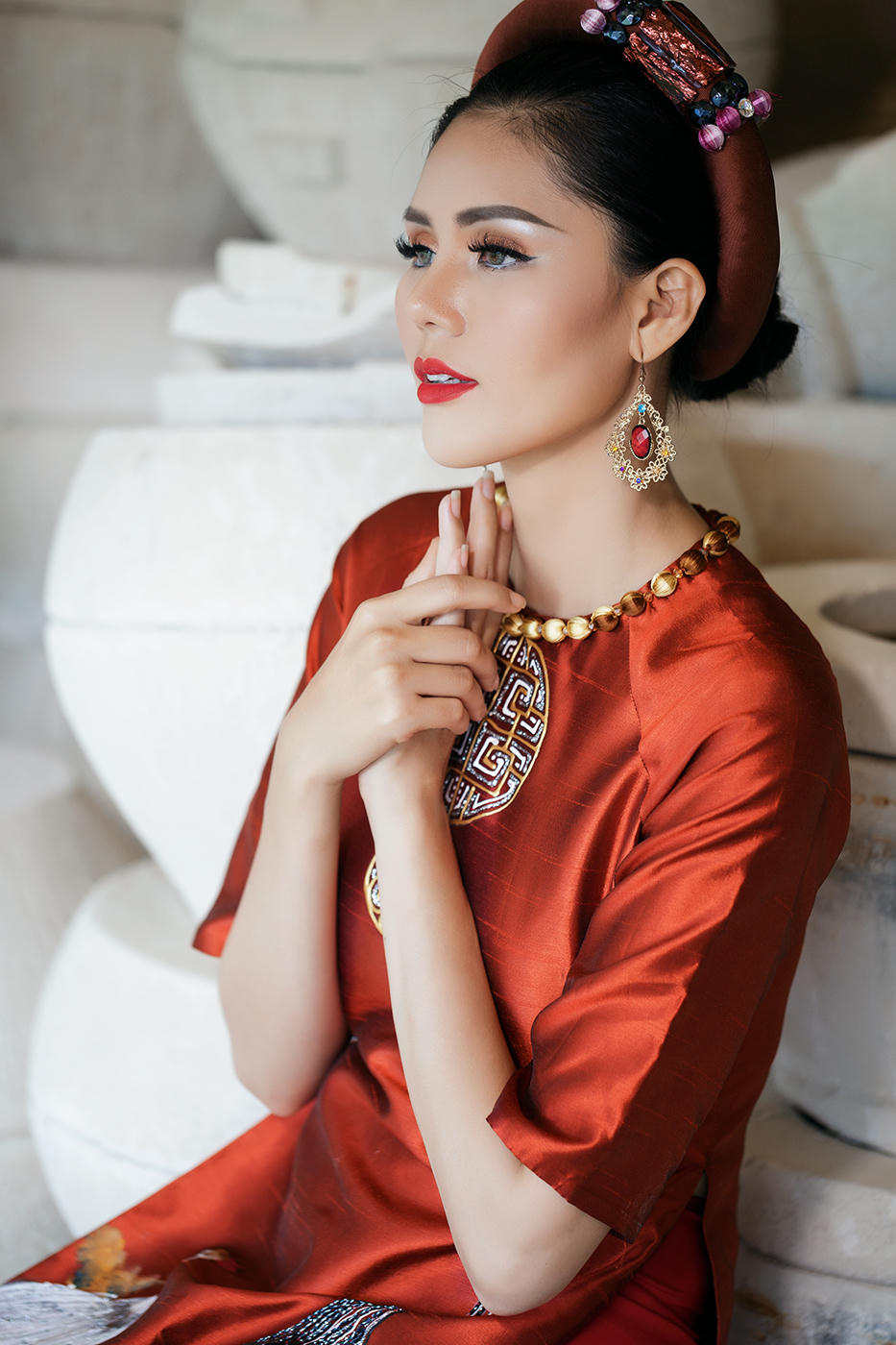 Á hậu Kim Nguyên diện áo dài xuất hành đón lộc đầu năm mới