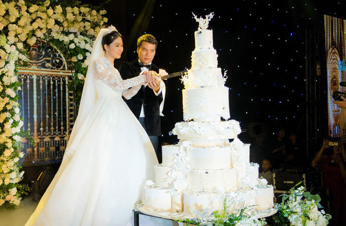 Chiếc bánh cưới nhiều tầng tượng trưng cho hạnh phúc lâu bền của đôi uyên ương. |