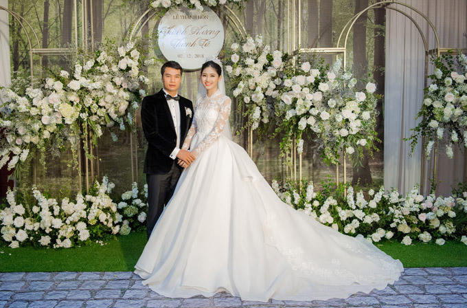 Trong tiệc cưới vào tối qua, Thanh Tú thay đến 3 bộ váy khác nhau. |
