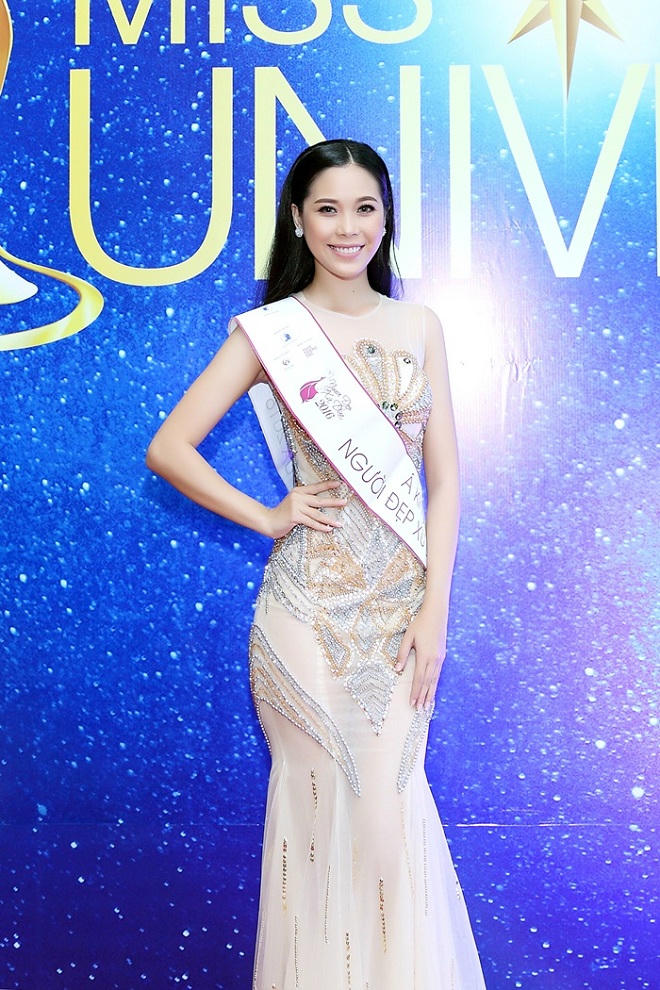 Á khôi Mỹ Duyên nhanh chóng thu hút sự chú ý của cánh truyền thông, các nhiếp ảnh có mặt tại sự kiện. Với thiết kế ôm sát, chiếc đầm đính kết khá nhiều đá pha lê giúp Á khôi Mỹ Duyên cuốn hút, khoe trọn vẹn đường cong cơ thể.