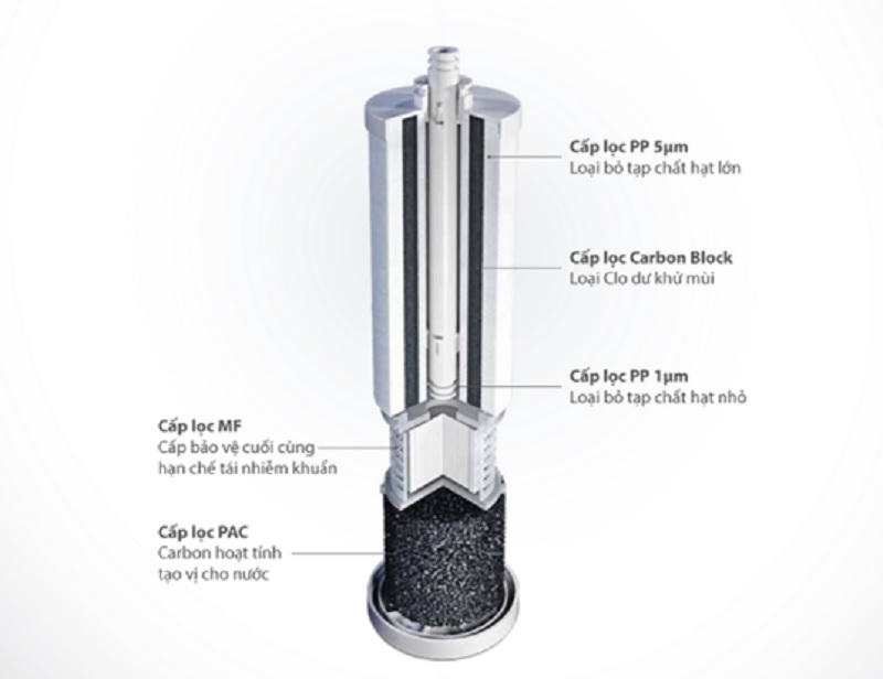 Đầu tiên phải kể đến công nghệ đúc lõi lọc nguyên khối inline, giúp giảm tối đa nguy cơ rò rỉ qua các khớp nối và cút nối trong quá trình sử dụng, rút gọn công đoạn lắp đặt.