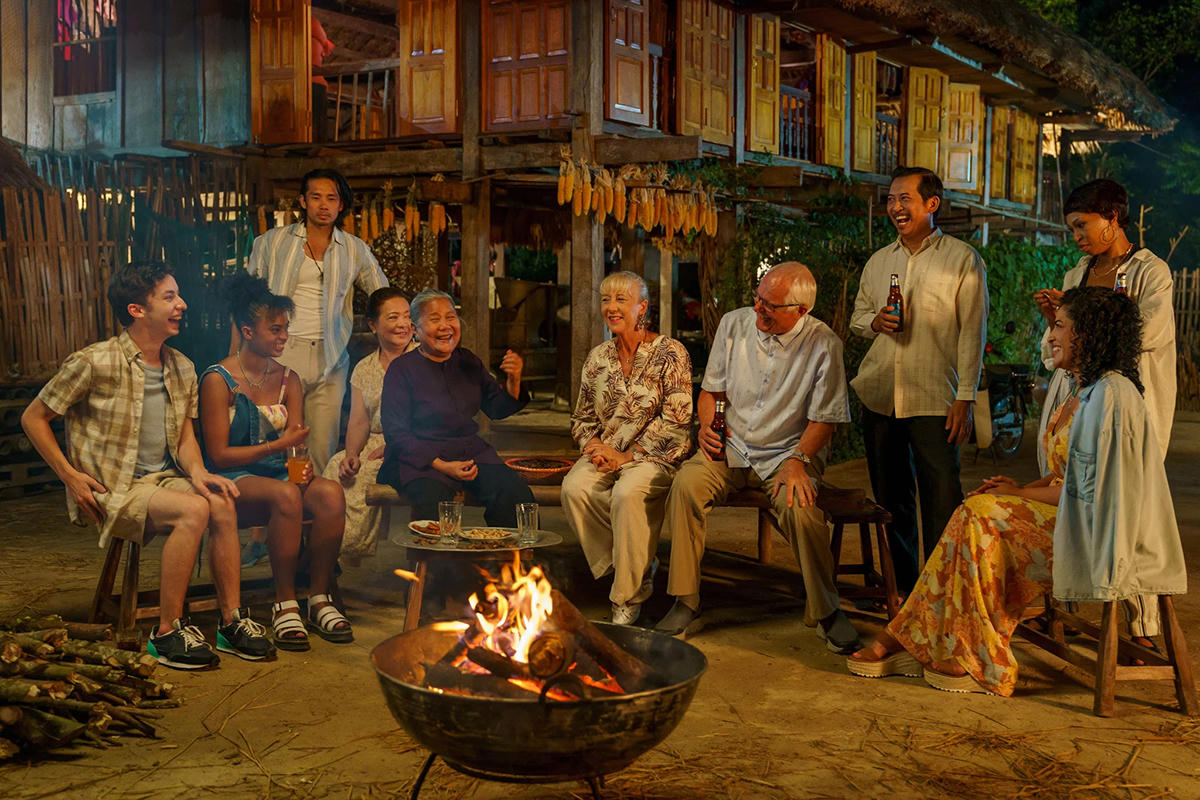 Nhiều phong tục khác như xông đất đầu năm, khung cảnh mọi người quây quần trên chiếu cói ăn bữa cơm Tết truyền thống, cảnh chợ quê cũng được đưa vào phim (Ảnh: Netflix) |