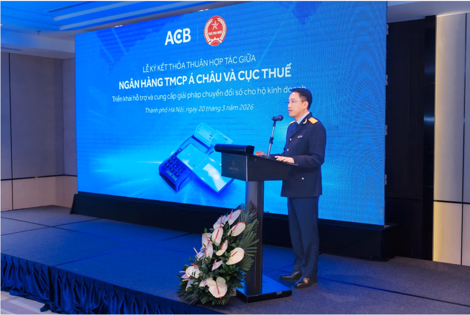 Ông Mai Sơn - Phó Cục trưởng Cục Thuế phát biểu tại sự kiện: “Việc phối hợp với ACB là bước tiến trong tăng cường kết nối giữa cơ quan thuế và tổ chức tín dụng, nhằm hỗ trợ hộ kinh doanh thực hiện đúng và đầy đủ nghĩa vụ thuế theo quy định. Chúng tôi ghi nhận sự chủ động của ACB trong việc xây dựng các giải pháp phù hợp với thực tiễn, góp phần vừa nâng cao hiệu quả quản lý, vừa hỗ trợ hộ kinh doanh trong ghi nhận doanh thu và theo dõi hoạt động kinh doanh. Các giải pháp này sẽ từng bước tháo gỡ tâm lý e ngại, thúc đẩy minh bạch hóa doanh thu và phát triển thanh toán không dùng tiền mặt.”