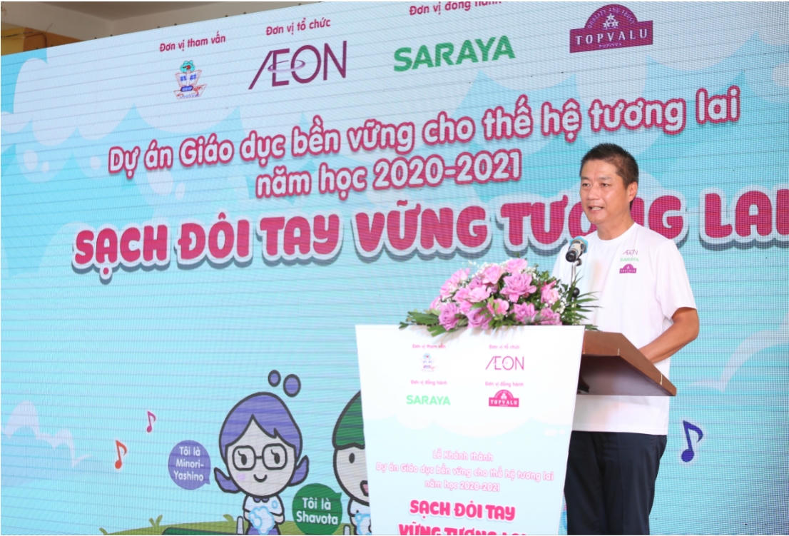 Ông Nishitohge Yasuo – Tổng Giám Đốc AEON Việt Nam chia sẻ: “Trong bối cảnh COVID-19 ảnh hưởng rất nhiều đến xã hội, AEON Việt Nam tin rằng giải pháp tốt nhất chính là hỗ trợ cộng đồng địa phương nâng cao nhận thức và trang bị tốt nhất có thể cho những khủng hoảng không thể lường trước, đặc biệt là cho trẻ em, thế hệ tương lai của xã hội. Đó chính là lý do hôm nay, AEON Việt Nam chính thức khởi động Dự án Giáo dục Bền vững cho Thế hệ tương lai.