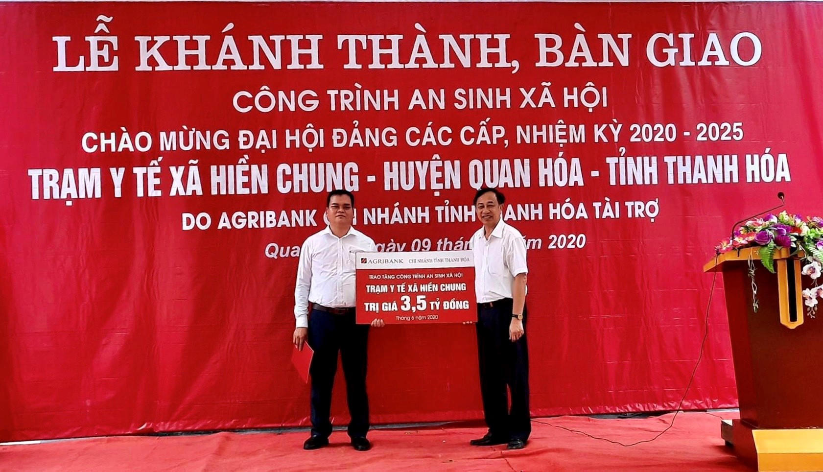 Sau nhiều ngày đầu tư xây dựng, ngày 09/6/2020, Agribank Chi nhánh tỉnh Thanh Hóa phối hợp với chính quyền xã Hiền Chung huyện Quan Hóa và xã Trung Tiến huyện Quan Sơn tổ chức lễ cắt băng khánh thành và bàn giao công trình an sinh xã hội là 02 Trạm Y tế xã. Đây là các công trình chào mừng Đại hội Đảng các cấp nhiệm kỳ 2020-2525 của Agribank Thanh Hóa.