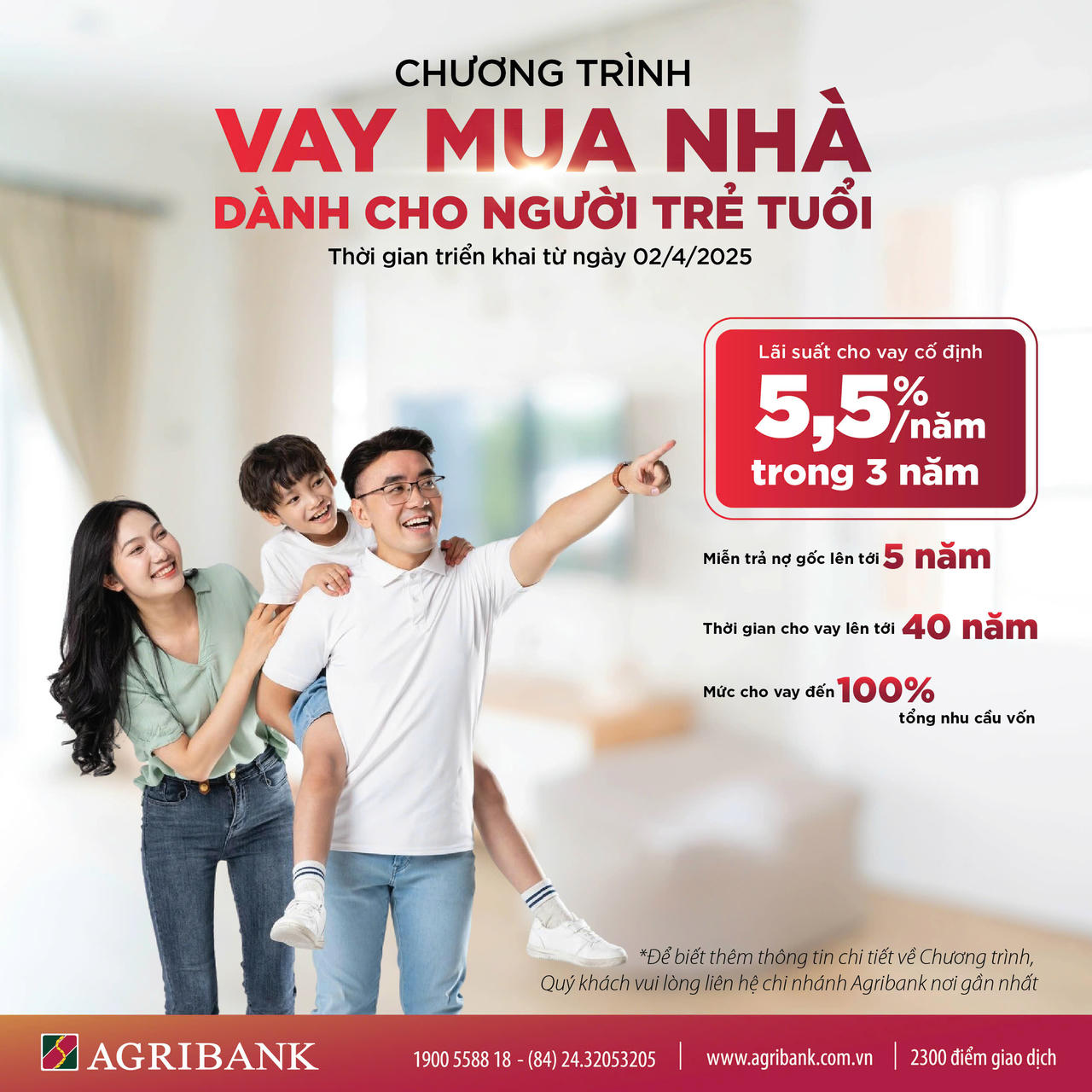 Chương trình tín dụng ưu đãi dành riêng cho người trẻ mua nhà chính là bước đi cụ thể, thiết thực và đầy ý nghĩa trong hành trình đồng hành của Agribank khi cùng thế hệ trẻ an cư, lập nghiệp.