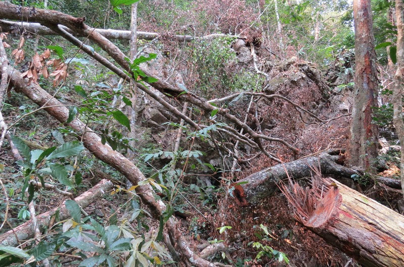 Một ghi nhận khác của chúng tôi từ hiện trường vụ phá rừng nghiêm trọng này, điểm tập kết số gỗ mun khai thác trái phép trước khi đưa ra khỏi rừng cũng nằm trong khu vực vành đai biên giới.