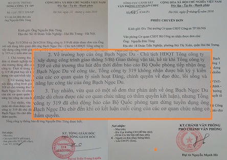 | TCty 319 thông báo tạm dừng tiếp nhận ông Bạch Ngọc Du và thông báo giải quyết tố cáo ông Du của cơ quan chức năng |