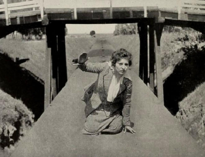 Lật lại lịch sử dòng phim hành động, nữ diễn viên người Mỹ Helen Holmes (1892-1950) được xem là ngôi sao nữ đầu tiên từng mạo hiểm ở thể loại phim kịch tính, gay cấn này.