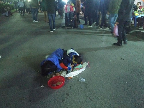 Anh Trần Văn Hưng quê ở Nam Sách, Hải Dương cho hay: “Đây là năm đầu tiên tôi đi lễ khai ấn đền Trần, vừa bước vào đoạn đường cấm tôi bị đập ngay vào mắt hình ăn hai mẹ con người ăn xin nằm giữa đường đưa chiếc rổ ra để xin tiền. Tôi cũng không phải là người vô cảm, nhìn thấy cháu bé trai kháu khỉnh bụ bẫm như vậy cộng với người mẹ nằm rạp xuống đất nhìn không biết là bị bệnh thật hay giả nhưng tôi vẫn đưa cho một chút tiền. Việc này là tùy tâm của mỗi người, nhưng theo tôi thì các ban ngành, các cơ quan chức năng cần tìm hiểu rõ nguồn gốc, quê quán, địa chỉ, hoàn cảnh gia đình của họ để có những chính sách hỗ trợ phù hợp. Chứ trời đêm lạnh, hai mẹ con “lê lết” khắp dọc đường như vậy trông vừa đáng thương lại vừa phản cảm”.
