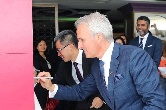 | Tổng Giám đốc của AIA & HSBC cùng các quan khách ký lên khối xếp hình, đánh dấu sự hợp tác AIA-HSBC |