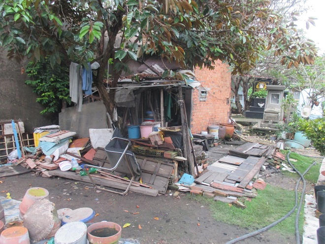 Nơi ở của hai mẹ con cụ Luận là căn phòng lợp tạm chỉ chừng 10m2, nền đất còn nhấp nhô chỗ thấp chỗ cao. Mái tôn thủng lỗ chỗ không che được những vệt nắng cuối ngày chiếu vào. Gian nhà ấy chỉ vừa đủ để kê một chiếc giường, một lối đi nhỏ và một cái bàn dài, hẹp chất đầy đồ đạc. Trong những đồ đạc ngổn ngang ấy, chiếc quạt bé tí đã cũ phát ra những tiếng rè rè có thể xem là tài sản có giá trị nhất.