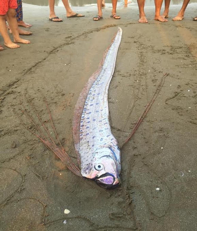 Tiếp đó, ngày 12/5 tại vùng biển Quảng Bình cũng đã ghi nhận một chú cá lạ dài hơn 4m trôi dạt vào bờ biển Trung Trạch, huyện Bố Trạch, Quảng Bình chính là Oarfish. Thời điểm ấy, sự việc trên cũng gây không ít hoang mang cho nhiều người. Nhưng sau cả hai sự việc trên đã không xảy ra bất kỳ một trận động đất hay sóng thần nào.