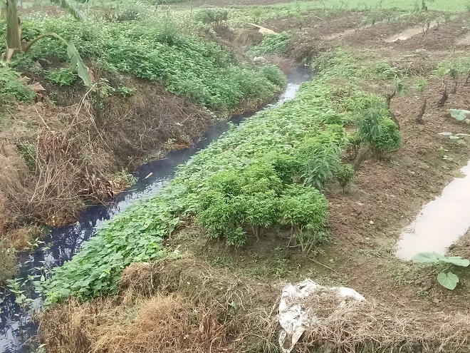 Một người dân ở tổ dân phố Thắng Lợi cho biết, các cơ sở dệt nhuộm, in trong vùng thường xuyên xả thải trực tiếp ra môi trường: “Ở đây người ta xả thải từ trưa đến tối, nước thải mỗi hôm một màu, có hôm thì đỏ quạch, hôm thì xanh lét, lúc lại trắng đục. Chúng tôi làm ruộng ở đây lúc nào cũng phải đeo ủng và găng tay”, người dân này nói.